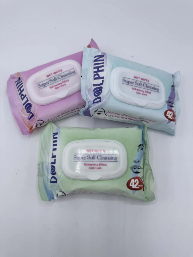 دستمال مرطوب دلفین قادر به پاک کردن انواع آرایش، حتی آرایشهای ضدآب است. -